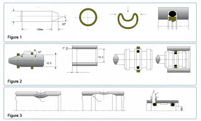 8. اگر مہر کے ہونٹ کو تیل کے دباؤ کے سوراخ سے گزرنے کی ضرورت ہے تو ، پلاسٹک کی چھڑی کو آہستہ سے ہونٹ کو دھکیلنے کے لئے استعمال کیا جانا چاہئے تاکہ سوراخ کے چیمفر کو سگ ماہی کے ہونٹ کو نقصان پہنچائے۔ سلنڈر کے سوراخوں کو چیمفیر کیا جانا چاہئے۔ (شکل 3)